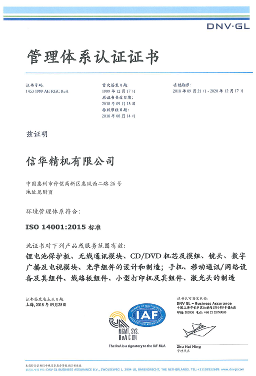 ISO14001 2015证书(2018)